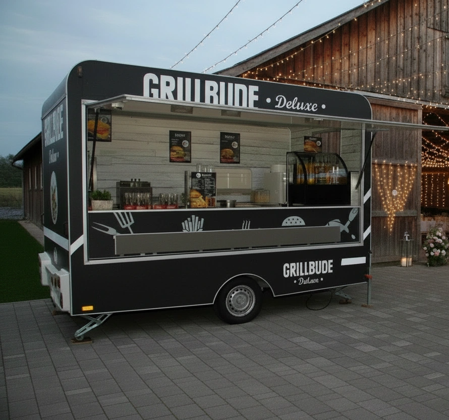 Die Grillbude Deluxe bringt nicht nur den Grill zum Glühen, sondern auch eure Veranstaltung ins Rollen. Ob private Feier, Geburtstag, Firmen-Event oder lockeres Sommerfest – die Grillbude kann unkompliziert für eure Veranstaltung gebucht werden und sorgt vor Ort für frisches, herzhaftes Essen und entspannte Stimmung.